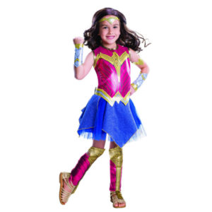 Fantasia Infantil Mulher Maravilha A Fantasia Infantil Mulher Maravilha tem os seguintes itens inclusos: Vestido Cinto Tiara Braceletes Braçadeira Caneleiras Confira na aba ” Medidas” os tamanhos disponíveis de cada fantasia, nela você encontra as medidas em centímetros para lhe auxiliar a escolher o melhor tamanho.